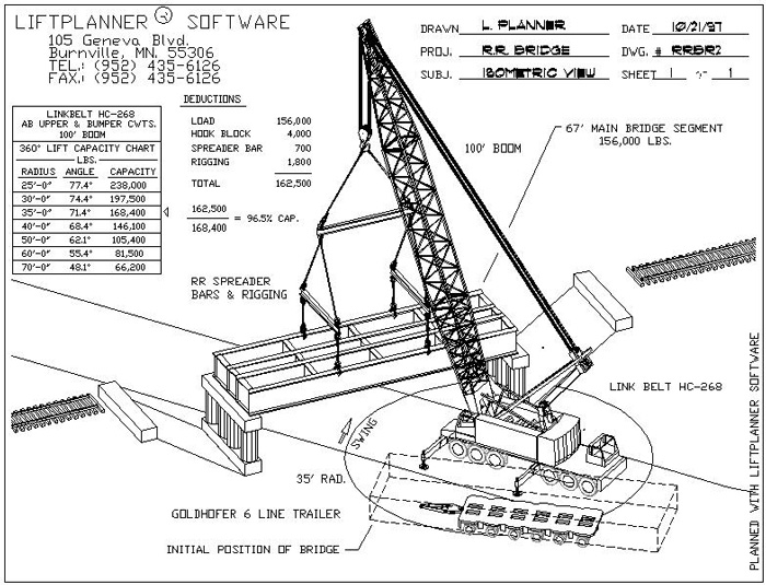 and railroad tracks are at a different angle and the elevation is raised. LiftPlanner makes it easy to model this